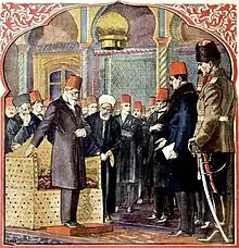 Le , le sultan Selim III est déposé, sa nouvelle armée (Nizam-i Djédid) est dissoute et ses réformes abolies par les janissaires. Ce sera une leçon pour le nouveau sultan Mahmoud II, qui essaiera tout au long de son règne (1808-1839) de sauver l’empire ottoman de l’effondrement par une série de réformes, et supprimera en 1826 l’institution des janissaires, opposés aux réformes. Malgré tous ces changements opérés par Mahmoud II, ce n’est qu’avec son successeur, le sultan Abdul-Medjid I (1839-1861) que l’ère des Tanzimat est officiellement inaugurée par l’édit impérial dit « du Gulkhané » promulgué le au palais de Topkapı. C’est le premier d'une série de textes et de mesures qui vont former le pilier essentiel des Tanzimat (« réorganisation » en turc). L’édit annonce que les sujets du sultan sont désormais égaux, il abolit l’affermage des impôts et promet le développement de nouvelles méthodes pour assurer la mise en place d’un système juste pour la conscription et l’entraînement des soldats de l’armée.
