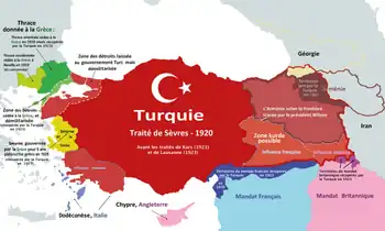 Les puissances occidentales croient le moment venu de satisfaire leurs ambitions, aussi bien les accords Sykes-Picot entre Français et Britanniques que la « Grande Idée » grecque d’Elefthérios Venizélos. Humilié par le traité de Sèvres qui reconnaît la démilitarisation des Détroits et le contrôle britannique, français, italien, arménien et grec sur certains territoires de l’Anatolie, le gouvernement du sultan tombe en discrédit.