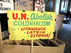 Parallèlement, les forces alliés, dont font partie les puissances coloniales, ont présenté leur combat comme celui de la démocratie et de la liberté des peuples. En outre, les puissances européennes sont concurrencées frontalement par les États-Unis et l'URSS, les puissances gagnantes à l'issue du conflit. En effet, les États-Unis, qui bien qu'ancienne colonie, souhaitent faire progresser leur influence politique et économique en lieu et place des anciennes puissances coloniales[8]. Pour l'URSS, la lutte anti-coloniale est directement assimilée à la lutte contre le camp impérialiste[8].