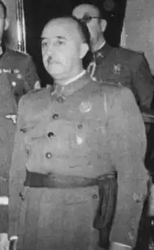 Après la création de la Junta Técnica, le pas suivant dans la consolidation du pouvoir du nouveau Caudillo des forces rebelles se produisit quelques mois plus tard, lorsqu'après l'échec de la prise de Madrid (entre novembre de 1936 et mars de 1937) l'idée de la nécessité d'une plus grande unité entre les forces politiques qui soutenait la révolte s'imposa. En cela, le Generalísimo Franco ne faisait que suivre le modèle que représentait pour les rebelles la dictature de Miguel Primo de Rivera (1923-1930)[29]. Il s'agissait de créer un parti unique en fusionnant les deux forces qui avaient apporté leurs milices à l'insurrection et qui avaient connu la croissance la plus notable depuis le début du conflit : carlistes et phalangistes. Les autres forces politiques qui soutenaient la tentative de coup d'État, « tolérées » mais ne bénéficiant pas de reconnaissance officielle, comme les royalistes philofascistes de Renovación Española ou les corporativistes catholiques de la CEDA, n'apportant pratiquement pas de combattants, étaient très peu influents et se trouvèrent totalement marginalisés — comme l'expérimenta le leader de la CEDA José María Gil-Robles —[30].
