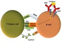 Le lymphocyte B avant d'être activé est appelé naïf. L'activation du lymphocyte B par l'intermédiaire des BCR déclenche une expansion clonale du lymphocyte activé, avec production de cellule mémoire, et déclenche à distance des cellules produisant des anticorps. Ces cellules produisant des anticorps sont appelés plasmocytes. L'activation du lymphocyte B par un antigène nécessite l'implication des cellules lymphocytaires T CD4.
