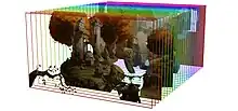 Dans le cas de certains jeux comme Shadow of the Beast sur Amiga gère jusqu'à treize calques simultanément, le processeur vidéo (appelé copper) était utilisé pour envoyer une instruction, synchronisé avec le balayage vertical et horizontal du canon à électrons. Le pointeur de mémoire pouvait donc être modifié à chaque ligne et faire défiler à une vitesse différente, des bandes de plusieurs lignes d'une image, multipliant ainsi l'effet de parallélisme et de profondeur[3].