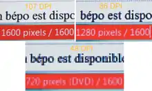 À 32 dpi, l’image est perçue comme optimum à 2,4 mètres[2], au-delà de 2,4 m l’image paraît de façon optimum mais plus petite. À 40 dpi, l’image est perçue comme non parfaite à une distance inférieure à 1,9 mètre, car l’on perçoit les pixels.