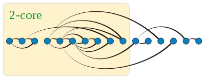 À la fin de l'algorithme, tout sommet aura au plus k liens vers les sommets de . Les l-cœurs de G sont les , sous-graphes induits par les sommets , où i est le premier sommet de degré au moment où il est ajouté à L.