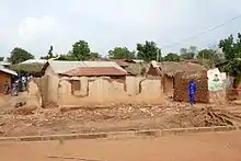 Démolition de constructions non conformes en bord de route – marquées d'une croix rouge – à Lokossa au Bénin en mars 2017, dans le cadre de la libération des espaces publics.