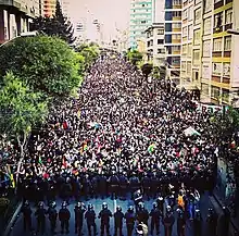 La crise post-électorale bolivienne de 2019 — qualifiée par plusieurs acteurs majeurs de « putsch »[alpha 1] ou de « coup d'État »[alpha 2] —, désigne la période d'instabilité sociale et politique ayant eu lieu en Bolivie après la diffusion des premiers résultats des élections générales du , qui donnaient vainqueur le président sortant Evo Morales dès le premier tour[2],[3],[4],[5]. Le parti vaincu, la Communauté civique, ainsi que certains acteurs de la société civile, notamment le Comité civique pro-Santa Cruz, en appellent à la grève générale afin de protester contre ces résultats et répondre à ce qu'ils dénoncent comme de la fraude électorale. Des manifestations et des affrontements entre partisans du président et opposants éclatent un peu partout dans le pays.