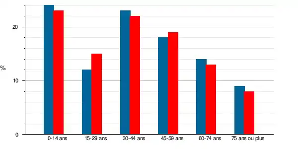 Le premier recensement exhaustif de la commune dans le cadre du nouveau dispositif de recensement de la population a eu lieu en 2004. Pour les communes de moins de 10 000 habitants, le recensement étant réalisé tous les 5 ans, 2009 est une année de recensement exhaustif. La répartition de la population de 15 ans ou plus par sexe, âge et état matrimonial légal en 2009 est présentée dans le tableau suivant.