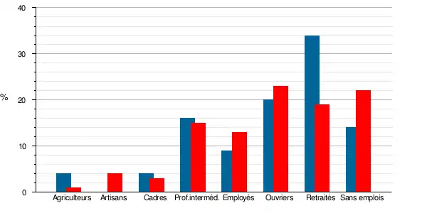 | Ouvriers | 64 | 23,2 | 44 | 19,6 | 15,7 | 17,3 | 13,5 | 14,9 |