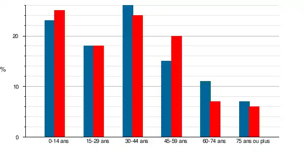 La population s'est rajeunie entre 1999 et 2009, le taux des personnes de 60 ans et plus passant de 18 % à 13 %, alors que parallèlement les populations du département et de la France ont quant à elles vieilli, passant respectivement de 18 à 20 % pour le Département et de 20 à 23 % pour la France métropolitaine.