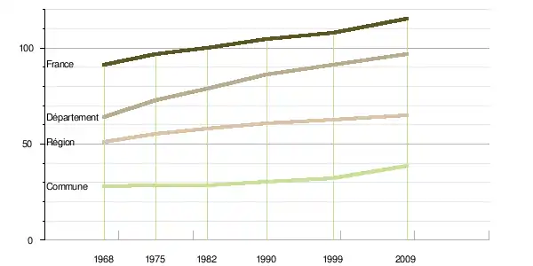 | 1968 | 1975 | 1982 | 1990 | 1999 | 2009 | Évolution annuelle moyenne sur la période 1968-2009 (%) | ||