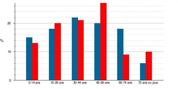 La population s'est rajeunie entre 1999 et 2009, le taux des personnes de 60 ans et plus passant de 24 % à 19 %, alors que parallèlement les populations du département et de la France ont quant à elles vieilli, passant respectivement de 20 à 23 % pour le Département et de 20 à 23 % pour la France métropolitaine.