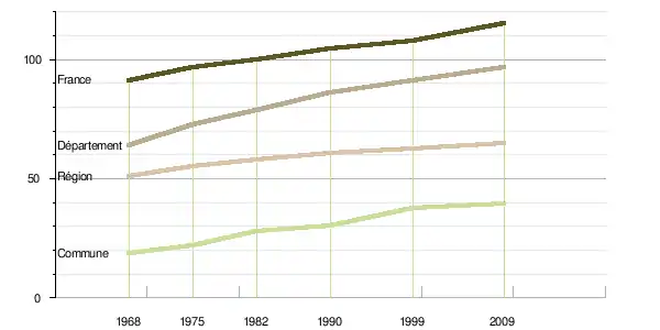 | 1968 | 1975 | 1982 | 1990 | 1999 | 2009 | Évolution annuelle moyenne sur la période 1968-2009 (%) | ||