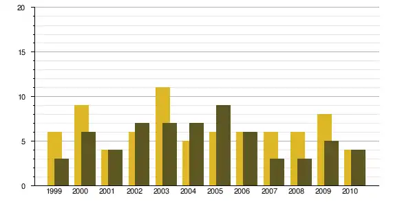 | 1968 à 1975 | 1975 à 1982 | 1982 à 1990 | 1990 à 1999 | 1999 à 2009 | ||