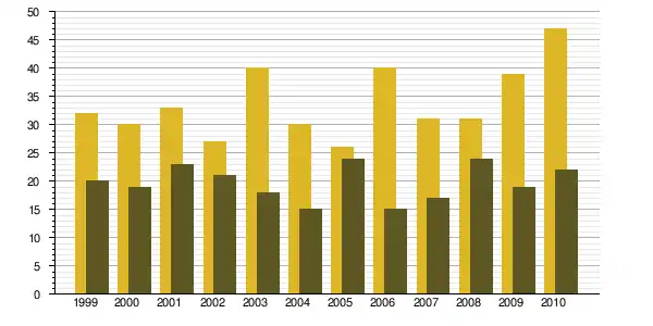 | 1968 à 1975 | 1975 à 1982 | 1982 à 1990 | 1990 à 1999 | 1999 à 2009 | ||