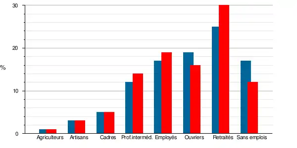 | Ouvriers | 401 | 15,9 | 440 | 18,8 | 15,7 | 17,3 | 13,5 | 14,9 |