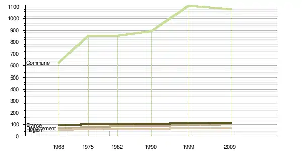| 1968 | 1975 | 1982 | 1990 | 1999 | 2009 | Évolution annuelle moyenne sur la période 1968-2009 (%) | ||