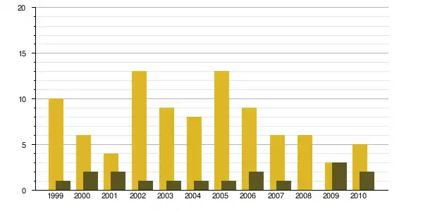 | 1968 à 1975 | 1975 à 1982 | 1982 à 1990 | 1990 à 1999 | 1999 à 2009 | ||
