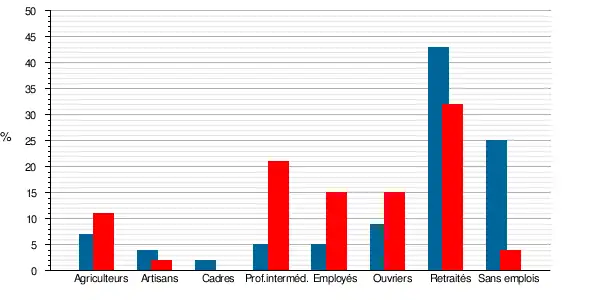 | Ouvriers | 28 | 14,9 | 20 | 8,9 | 15,7 | 17,3 | 13,5 | 14,9 |