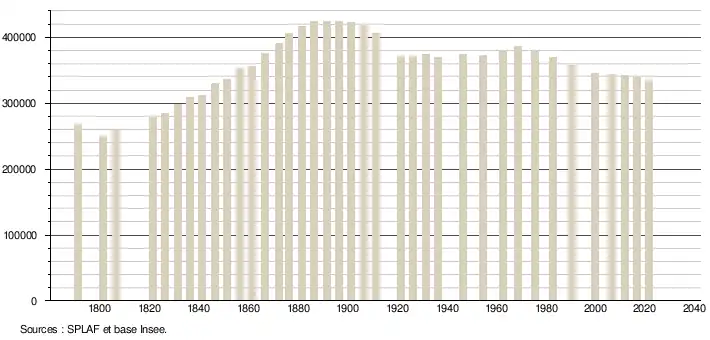 En 2021, le département comptait 334 872 habitants[Note 1], en diminution de 1,97 % par rapport à 2015 (France hors Mayotte : +1,84 %).