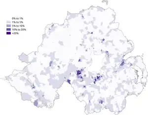Le dernier recensement a eu lieu en 2011, et a dénombré 1 810 863 habitants, en augmentation de 125 800 (soit 7,5 %) depuis le recensement de 2001, 10 ans auparavant[3]. La densité de population est de 133 habitants par km², soit la moitié de celle du Royaume-Uni, mais deux fois celle de la république d'Irlande[4]. Plus d'un tiers de la population vit dans le grand Belfast.