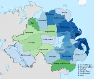 - Lire l'article en anglais : Reform of local government in Northern Ireland pour plus de détails