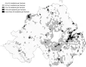 L'Irlande du Nord comptait 1 799 400 habitants en 2010[1]. La densité de population moyenne était de 130 habitants au km².