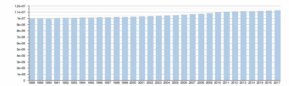 | Wallonne | 3 339 516 | 3 346 457 | 3 358 560 | 3 368 250 | 3 380 498 | 3 395 942 | 3 413 978 | 3 435 879 | 3 456 356 | 3 475 671 | 3 498 384 | 3 525 540 | 3 546 329 | 3 563 060 | 3 576 325 | 3 589 744 | 3 602 216 | 3 614 473 | 3 624 377 | 3 633 795 |