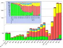 | Russes | 180 963 | 33,11 | 301 398 | 42,2 | 558 481 | 49,6 | 858 273 | 71,4 | 1 220 484 | 67,3 | 1 460 980 | 66,9 | 1 629 542 | 67,0 | 1 450 400 | 60,4 | 1 492 000 | 65,3 |