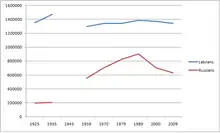 | Non-citoyens de Lettonie | 296 619 | 232 143 | 222 847 | 214 206 | 205 565 | 197 888 | 190 544 | 182 396 |