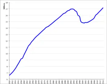 | Taux de natalité | 17,5 ‰ (2018)[6],[7] |