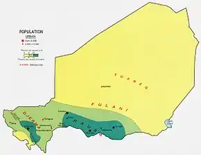- quelques habitants au km2 dans la zone sahélienne (13,4 hab/km2 dans le département de Tanout)),