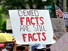 Face à la science, le dénialisme est le rejet du consensus scientifique sur un sujet donné, en faveur d'idées radicales controversées[2] à un niveau médiatique. Ce déni se caractérise donc par le rejet des preuves scientifiques patentes; la création de contenus faussement scientifiques ; les tentatives de générer une controverse[3],[4] ; les tentatives de nier l'existence d'un consensus.