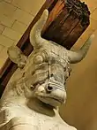 ![]() Lamassus du palais de Khorsabad ou Taureau androcéphale ailé Haut-relief et ronde-bosse, albâtre gypseux Hauteur : 4,20 m ; longueur : 4,36 m. Fouilles Paul-Émile Botta 1843-1844 Musée du Louvre, base Collections Aile Richelieu, rez-de-chaussée, salle 229 |