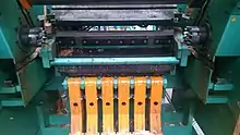 - Une roue codeuse, roue équipée d'un codeur ou autres méthodes visant à mesurer la longueur du ruban déroulé afin de piloter le massicot.