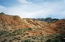 Le deuxième type de désert très présent est un désert de sable, avec des zones de dunes qui peuvent soit se déplacer au gré des vents, soit être fixes, stabilisées par la végétation[1]. Les géographes l'appellent « erg », terme emprunté à l'Afrique du Nord (rīg, ou rēg en persan)[1].