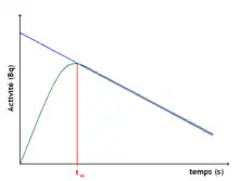 Les activités des deux isotopes sont alors équivalentes et décroissent selon la constante radioactive de l'isotope 1.