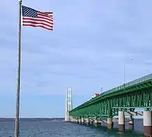 Vue du détroit de Mackinac, avec le pont Mackinac.
