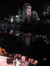 Chaque année, des commémorations ont lieu le . Elles rassemblent de nombreuses personnes ayant un lien ou non avec les victimes de la bombe. Des tōrō nagashi (lanternes flottantes) sont déposées sur la rivière Ōta, certaines étant allumées avec des flammes provenant de l'incendie qui suivit le bombardement[10]. Ces lanternes sont appelées « les braises de la bombe atomique[10] ». À 8 h 15, une prière silencieuse a lieu en compagnie du maire de Hiroshima, du premier ministre du Japon et de rescapés de la catastrophe[10].