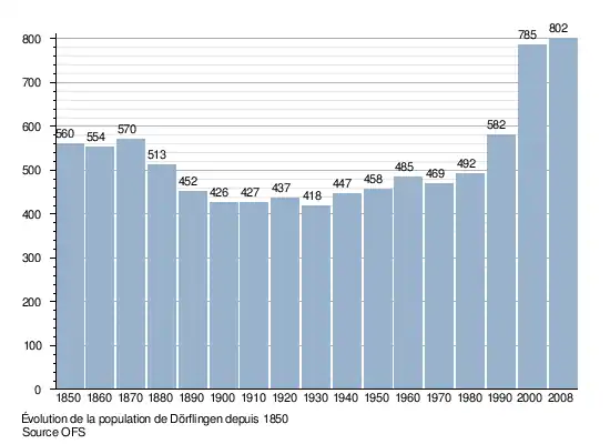 Le graphique suivant résume l'évolution de la population de Dörflingen entre 1850 et 2008[5] :