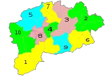(1) Ain Makhlouf * (2) Bouchegouf * (3) Guelaât Bou Sbaâ (4) Guelma (5) Hammam Debagh (6) Hammam N’Bails (7) Héliopolis (8) Houari Boumédiène (9) Khezarra (10) Oued Zenati