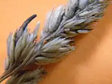 L'inflorescence est une panicule unilatérale, contractée ovale assez caractéristique, de 2 à 30 cm de long, ramifiée. Elle est formée de groupes d'épillets souvent violacés, rassemblés en glomérules serrés[7]. Les épillets fertiles, pédicellés, comptent de 2 à 5 fleurons fertile, avec des fleurons réduits à l'apex. Ces épillets, oblongs ou cunéiformes, de 5 à 9 mm de long, sont fortement comprimés latéralement. Ils se décomposent à maturité en se désarticulant à la base de chaque épillet fertile[8].