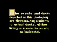 Note du réalisateur, au début du film, de non-responsabilité en cas de ressemblance des canards fictifs du film avec ceux existants, vivants ou « rôtis ».