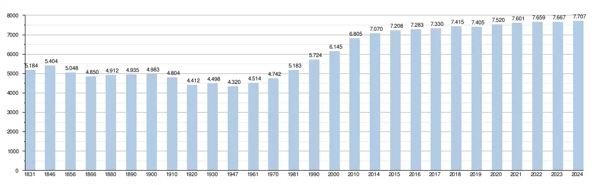 - Source: DGS , de 1831 à 1981=recensements population; à partir de 1990 = nombre d'habitants chaque 1 janvier