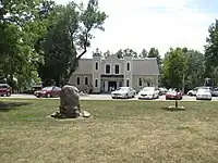 Le pavillon de pierre de Danebod (Danebod Stone Hall) est construit en 1889. Il s'agit d'un bâtiment en pierre d'un seul étage prenant la forme d'une croix latine. L’aile d'entrée comprend des créneaux d'inspiration médiévale mais la plupart de ses ouvertures se rapprochent davantage du style Greek Revival[48]. La pavillon est construit à partir de pierres extraites par des fermiers locaux et travaillées par le tailleur de pierre danois Kristian Klink. L'édifice est utilisé comme une église, puis un gymnase et une salle de réunion. Ses points d'intérêts incluent l'ancienne cloche à l'extérieur du bâtiment, la fresque du gymnase, l'ancienne chandelier de l'église luthérienne et les pierres taillées à la main de la structure[34]. Le pavillon est aujourd'hui un musée regroupant des photographies, écrits et objets de l'histoire de Danebod. Elle sert également de salle de réunion pour plusieurs activités[50].