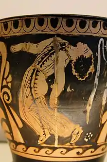 On sait peu de chose sur la danse extatique dans l'antiquité. Cependant, la mythologie grecque a plusieurs histoires des Ménades. Les ménades étaient des adoratrices enivrées du dieu grec du vin, Dionysos, connues pour leurs "révélations extatiques et leurs danses frénétiques"[6],[7]. Les mythiques adeptes féminines de Dionysos, comprenant les bacchants et les thyai ainsi que les ménades, auraient recherché le "délire sauvage" de la possession par le dieu pour pouvoir "sortir d'eux-mêmes", ce qu'on appelait "ekstasis". Les homologues masculins des Ménades étaient les Corybantes (grec Κορύβαντες), des danseurs extatiques armés et huppés qui adoraient la déesse phrygienne Cybèle avec des tambours et des danses. Ils étaient la progéniture de la muse Thalie et du dieu Apollon. Les Grecs les confondaient souvent avec d'autres confréries mâles extatiques, comme les Dactyles idéens ( Greek Δάκτυλοι Ἰδαῖοι) ou les Corybantes crétois (Κουρῆτες), des jeunes esprits (kouroi) dotés de pouvoirs magiques qui ont agi en tant que gardiens de l'enfant Zeus[8].
