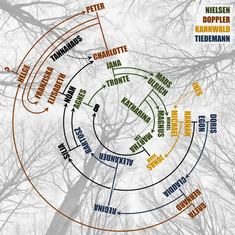• Silja Tiedemann : fille de Hannah Kannwald et Egon Tiedemann. Femme de Bartosz, elle donne naissance à Hanno (Noah) et Agnes. Grand-tante de Bartosz. Et demi-sœur de Jonas et de Claudia.