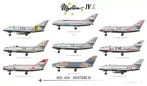 - Avec le MD 450 Ouragan dont découle la famille Mystère-Etendard.