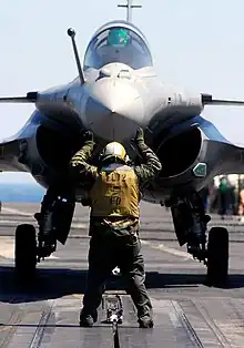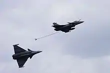 Le Rafale de Dassault Aviation est un avion de combat multirôle — qualifié d'« omnirôle » par son constructeur[10] — développé pour la Marine nationale et l'Armée de l'air françaises, livré à partir du et entré en service en 2002 dans la Marine[8],[11],[12]. Il équipe outre la France, les forces aériennes égyptiennes, qataries, indiennes, grecques et croates. L'Indonésie et les Émirats arabes unis ont également passé commande.