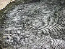 - Dendrochronologie, basée sur l'analyse en épaisseur et le comptage des anneaux de croissance des arbres. La dendrochronologie a trois principaux domaines d'application: la paléoécologie, où elle est utilisée pour déterminer certains aspects des écologies passées (principalement le climat) ; l'archéologie, où elle est utilisée pour dater de vieux édifices ; et la datation au radiocarbone. Il est possible de dater le bois vieux de plusieurs milliers d'années, jusqu'à 11 000 ans[7].