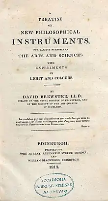 Il est l'inventeur du kaléidoscope et d'un stéréoscope à deux lentilles. Ses travaux sur la polarisation de la lumière par réflexion (Angle de Brewster) lui valent d'être élu membre de la Royal Society le [1] et d'en recevoir la médaille Copley la même année. Il est lauréat de la médaille Rumford en 1818, de la médaille Keith en 1827 et de la Royal Medal en 1830.